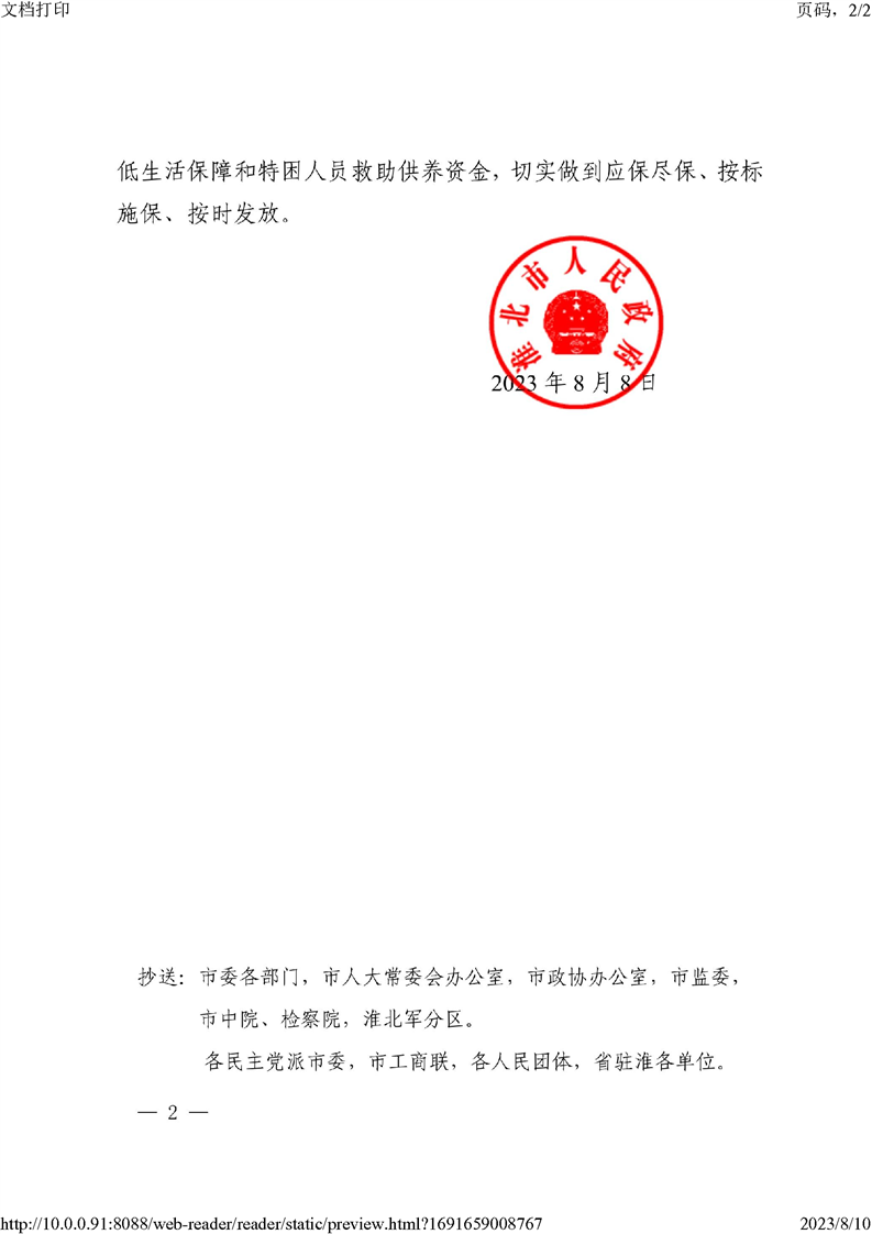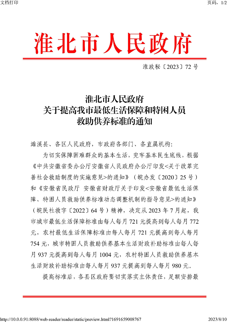 【補(bǔ)貼標(biāo)準(zhǔn)】淮北市人民政府關(guān)于提高我市最低生活保障和特困人員救助供養(yǎng)標(biāo)準(zhǔn)的通知