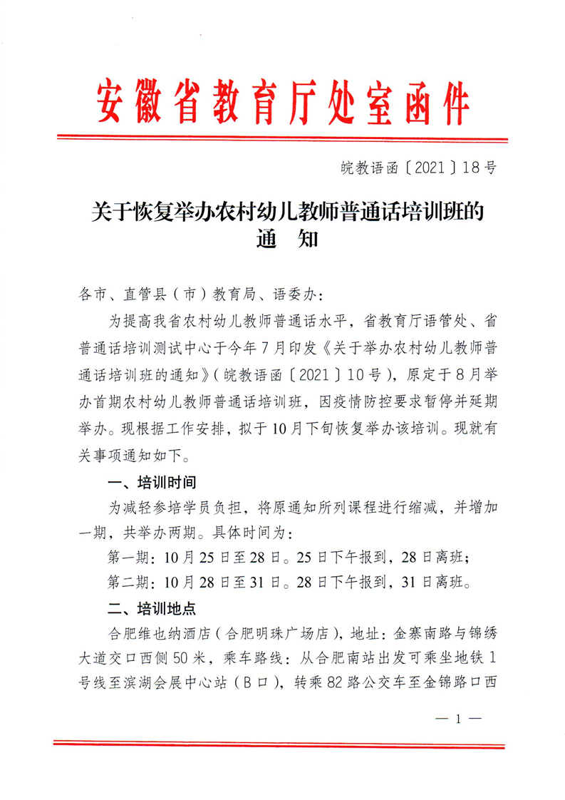 關(guān)于恢復(fù)舉辦農(nóng)村幼兒教師普通話培訓(xùn)班的通知