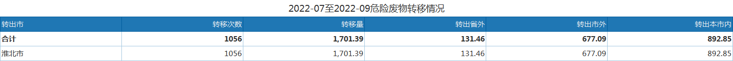 2022年第三季度固體廢物(危險危廢)轉(zhuǎn)移情況