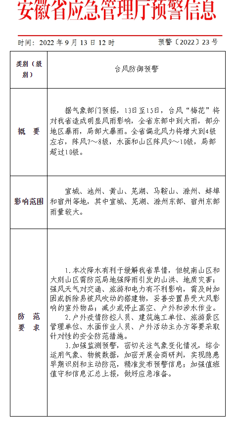 【自然災(zāi)害類預(yù)警信息】9月13日至15日臺(tái)風(fēng)防御預(yù)警
