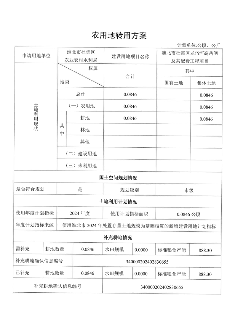 淮北市杜集區(qū)龍岱河高岳閘及其配套工程項目農(nóng)轉(zhuǎn)用方案