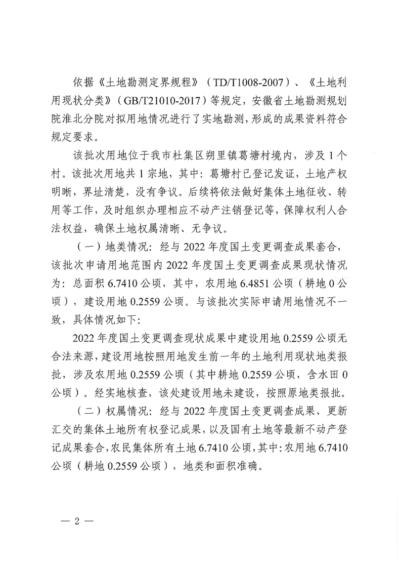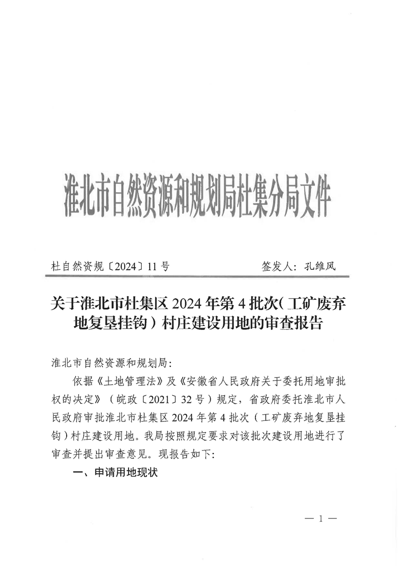 關(guān)于淮北市杜集區(qū)2024年第4批次(工礦廢棄地復(fù)墾掛鉤)村莊建設(shè)用地的審查報告