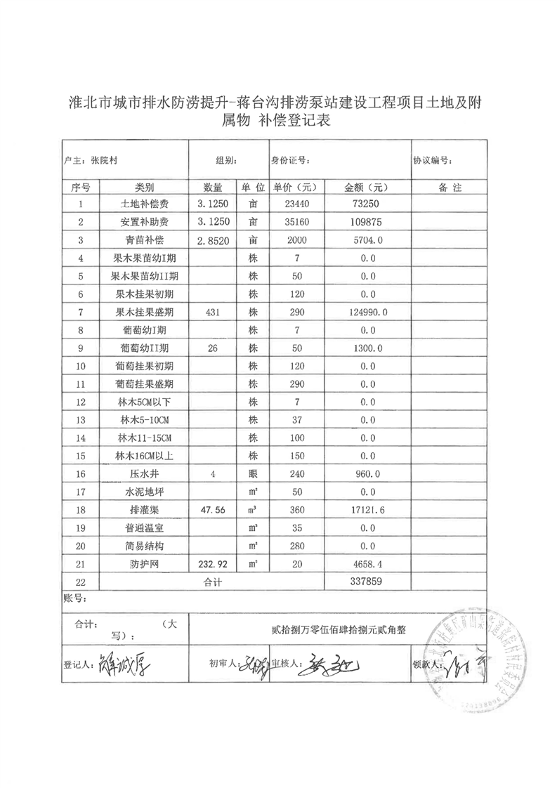 淮北市城市排水防澇提升-蔣臺溝排澇泵站項目土地及附著物征收補償協(xié)議書