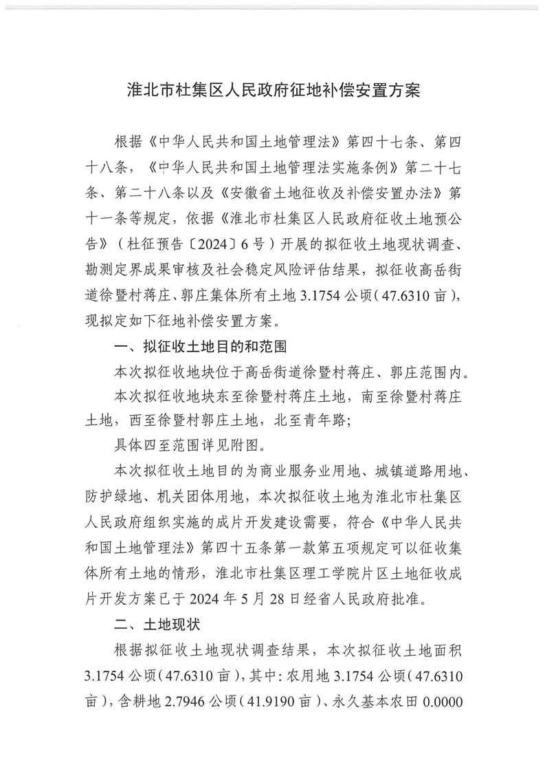 淮北市杜集區(qū)2024年第16批次(工礦廢棄地復墾掛鉤)城鎮(zhèn)建設用地征地補償安置方案