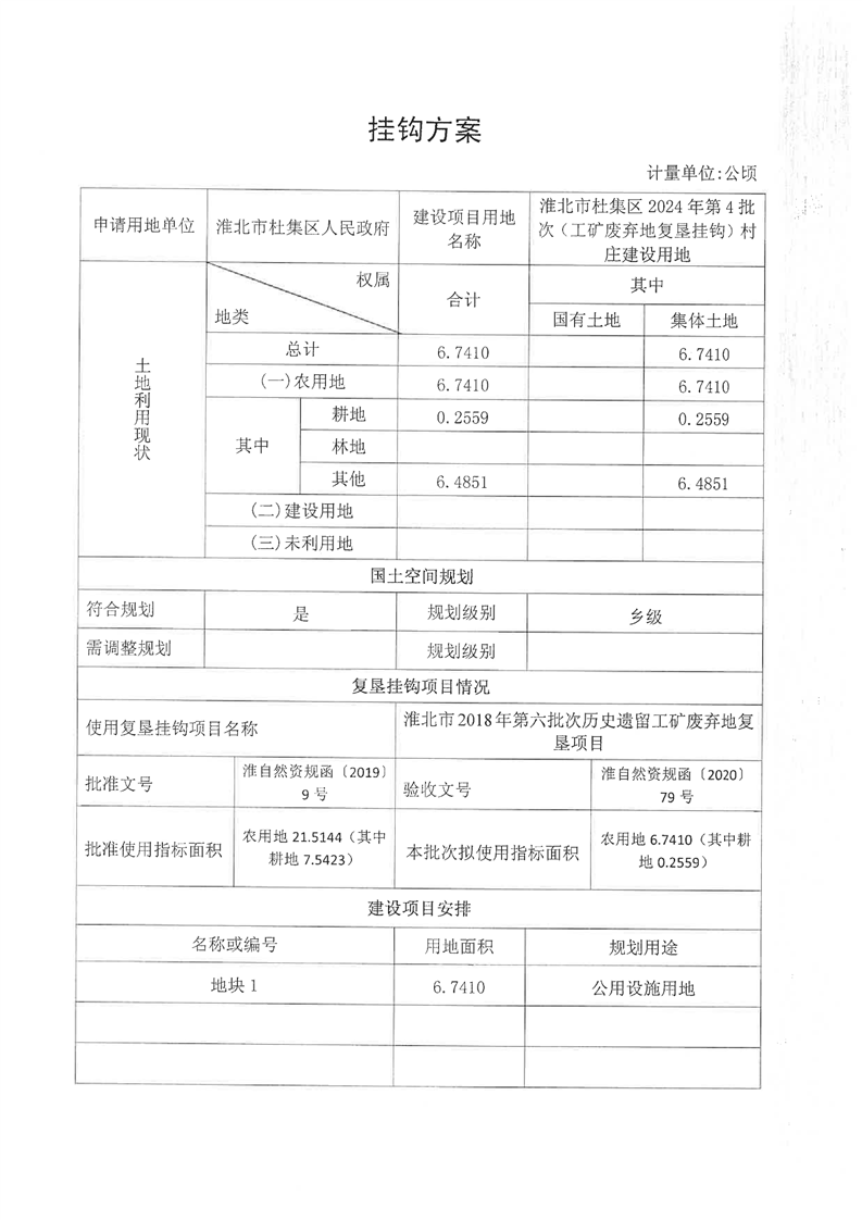 淮北市杜集區(qū)2024年第4批次(工礦廢棄地復(fù)墾掛鉤)村莊建設(shè)用地呈報掛鉤方案