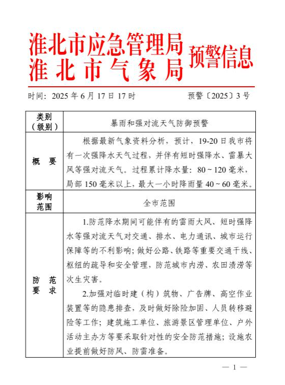 暴雨和強(qiáng)對(duì)流天氣防御預(yù)警(預(yù)警〔2025〕3號(hào))