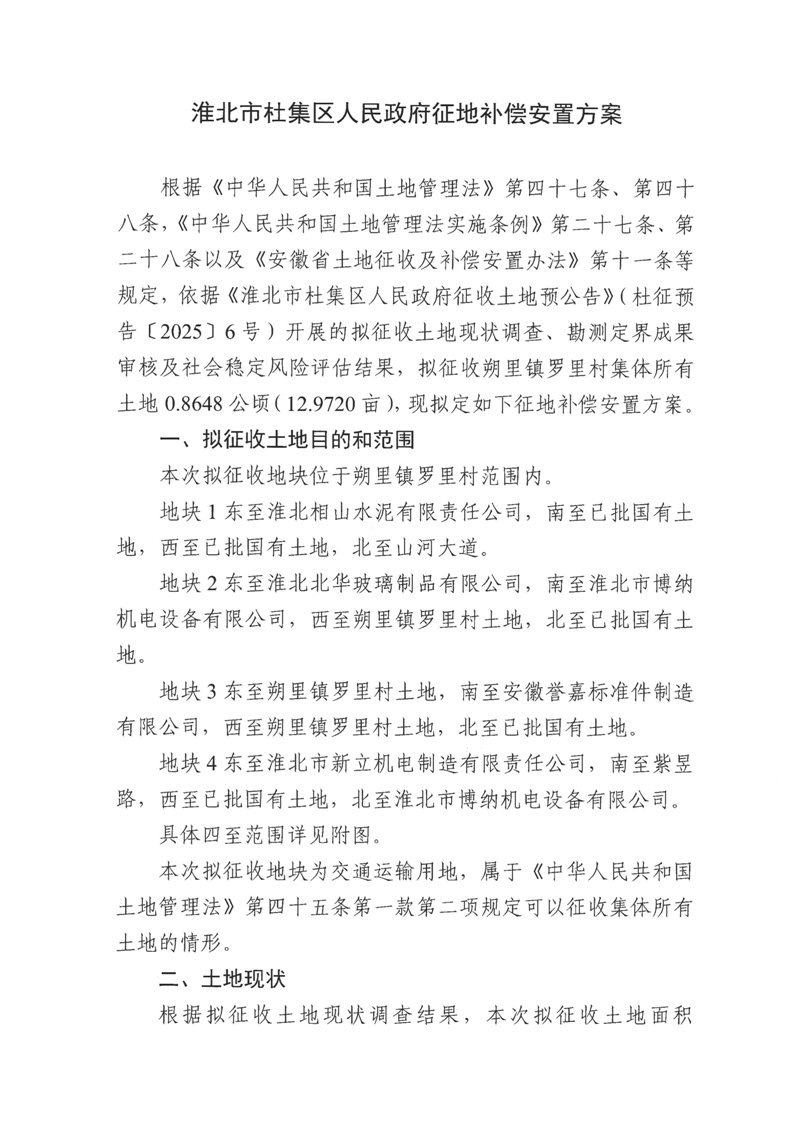 淮北市杜集區(qū)2025年第9批次(工礦廢棄地復(fù)墾掛鉤)城鎮(zhèn)建設(shè)用地征地補(bǔ)償安置方案